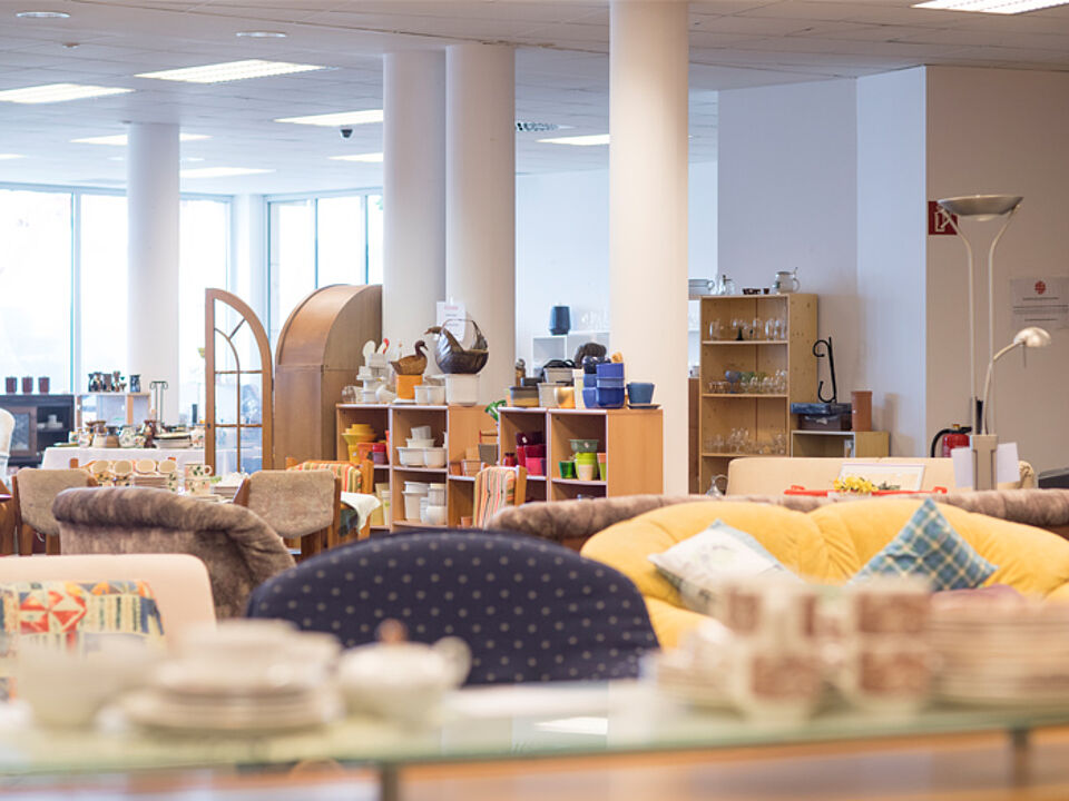 Angeboten werden gebrauchte Wohnmöbel, Haushaltswaren, Spielsachen, Gartenmöbel, Dekoartikel und andere Gegenstände des täglichen Lebens. Das Sortiment wechselt ständig. Die gut erhaltenen Waren stammen aus Spenden und werden zu günstigen Preisen abgegeben.