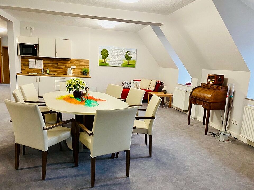 Auf zwei Ebenen steht das Wohlbefinden der Bewohner/innen im Mittelpunkt des täglichen Handelns. Die Gestaltung des Alltags geschieht im Zusammenspiel zwischen den Bewohner/innen und dem qualifizierten und eingespielten Team aus den Bereichen Pflege, Sozialer Dienst und Hauswirtschaft. Die familiären Strukturen in dem historischen Gebäude, welches früher als Amtsgericht genutzt wurde, geben Übersicht und Geborgenheit.