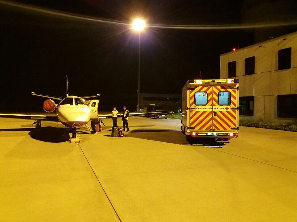 Es kommt auf Ihren Not-Fall an. Das Flugzeug vom Deutschen Roten Kreuz ist wie ein Kranken-Wagen. 2 Piloten fliegen das Flugzeug. Es ist ein Not-Arzt im Flugzeug und Helfer. Wir holen Sie schnell und sicher zurück nach Deutschland. Und Sie kommen sofort in ein Kranken-Haus. Sie brauchen sich um nichts kümmern.